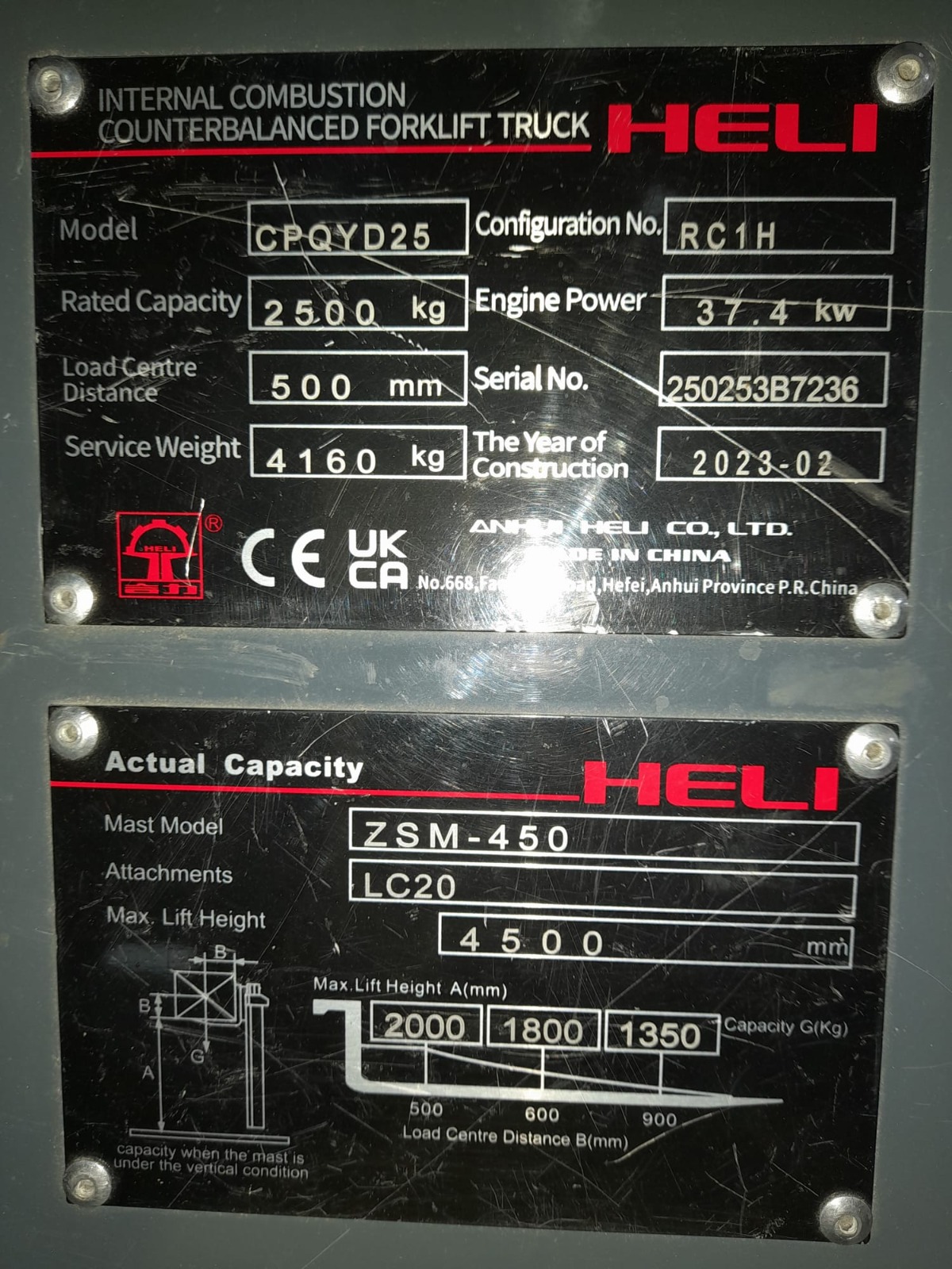 Sarcina de ridicare 2.500 kg la cg 500 mm
